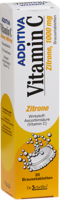 Additiva Vitamin C, 1000 mg, Brausetabletten. Wirkstoff: Ascorbinsäure. Anwendungsgebiet: Zur Behandlung von Vitamin-C-Mangel-Krankheiten. Warnhinweis: Enthält Natrium, Sorbitol und Farbstoffe (Gelborange S (E 110), Azorubin (E 122)).