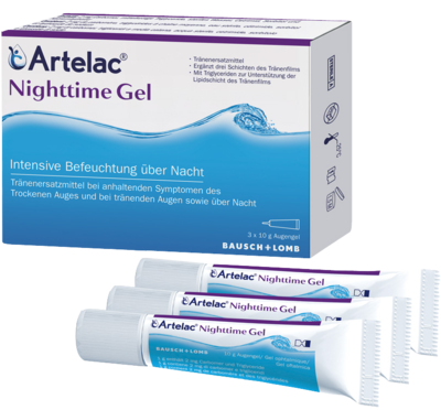 Artelac NighttimeGel ist ein hochviskoses Augenbefeuchtungsmittel, welches alle drei Schichten des Tränenfilms ergänzt und die Augenoberfläche bei Symptomen des trockenen Auges langanhaltend mit Feuchtigkeit versorgt und schützt.