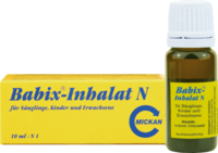 Babix-Inhalat N. Anwendungsgebiete: zur Besserung der Beschwerden bei Erkältungskrankheiten der Atemwege mit zähflüssigem Schleim.