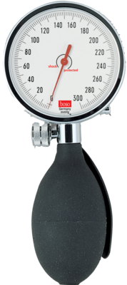 Dieses klassische Gerät ermöglicht Ihnen die Messmethode, wie sie auch oft beim Arzt angewandt wird. Optional ist es sogar als Linkshänder-Modell erhältlich, damit sich das das Drehventil immer bequem bedienen lässt. Das Stethoskop ist fest in der Manschette integriert und die Skala kann optional in zwei Größen gewählt werden (Ø 48 oder 60 mm).