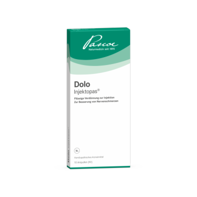 Dolo Injektopas, Flüssige Verdünnung zur Injektion. Anwendungsgebiete: Die Anwendungsgebiete leiten sich von den homöopathischen Arzneimittelbildern ab. Dazu gehören: Besserung von Nervenschmerzen.