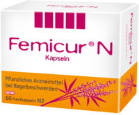 Femicur N Kapseln. Wirkstoff: Trockenextrakt aus Mönchspfefferfrüchten. Anwendungsgebiete: Rhythmusstörungen der Regelblutung (Regeltempoanomalien), monatlich wiederkehrende Beschwerden vor Eintritt der Regelblutung (prämenstruelle Beschwerden), Spannungs- und Schwellungsgefühl in den Brüsten (Mastodynie). Warnhinweis: Enthält Cellulose und Lactose. Packungsbeilage beachten!
