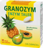 GRANOZYM Enzym-Taler enthalten das Ananas-Enzym-Bromelin, das Papaya-Enzym Papain sowie Multi-Enzyme aus fermentiertem Getreide. GRANOZYM Enzym Taler haben sich seit vielen Jahren zur Unterstützung des allgemeinen Wohlbefindens, z.B. nach üppigen Mahlzeiten oder ungewohnter Kost auf Reisen, bewährt.