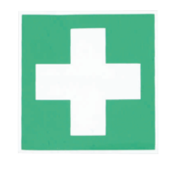 Aufkleber zur Kennzeichnung für ###Erste Hilfe###- Weißes Kreuz auf grünem Untergrund.