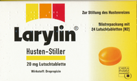 Larylin Husten-Stiller Pastillen. Wirkstoff: Dropropizin. Anwendungsgebiete: bei Reiz- und Krampfhusten (trockener, unproduktiver Husten) Irritationen und Reizungen der oberen Atemwege.