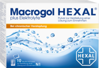 Macrogol Hexal plus Elektrolyte, Pulver zur Herstellung einer Lösung zum Einnehmen. Anwendungsgebiete: Abführmittel zur Behandlung von Verstopfung (insbesondere bei länger anhaltender Verstopfung) bei Erwachsenen, Jugendlichen und älteren Patienten.