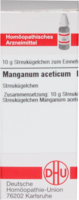 Manganum Aceticum D 12 sind Streukügelchen. Packung mit 10 g Streukügelchen