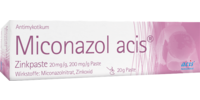 Bitte sprechen Sie mit Ihrem Arzt oder Apotheker, bevor Sie Miconazol acis Zinkpaste anwenden. Miconazol acis Zinkpaste ist nur zur äußerlichen Anwendung bestimmt und darf nicht eingenommen werden. Kontakt mit den Augen vermeiden. Sollte es zu Überempfindlichkeitsreaktionen oder Irritationen kommen, ist die Behandlung abzubrechen.