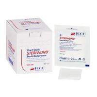 Sterile, gefaltete Mullkompressen mit eingeschlagenen Schnittkanten- 17-fädig, 8-fach gelegt.