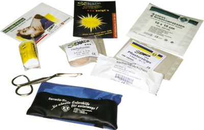 Inhalt:Stück ERENA–%%%Produkt–%%%Bezeichnung PZN 1 Porena Fixierbinde 4m x 6cm, elast. DIN 61634 FB 6 02794990 1 Erena–%%%Vlies–%%%Kompresse steril 10x10 cm, 2 Stück 08891286 1 Senada Schere DIN 58279–%%%A 145 08891228 1 Senada Heftpflasterspule DIN 13019–%%%A 5 m x 2,5 cm 08891240 1 Senada Erste–%%%Hilfe–%%%Broschüre 08891263 1 Senada Pflasterstrip 19 x 72 mm, 5 Stück 00483033 1 Senada Verbandpäckchen DIN 13151–%%%M 08421161
